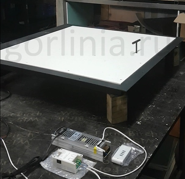 Крышка ходит на скрытых петлях в автоматическом режиме с помощью актуатора. Редуктор крепится на штатный кронштейн к раме с вылетом на 48 мм внутрь лаза 562х917, а шток - на полозья через шпильки к створке. Электропривод управляется контроллером на пульте или опционно через выносную клавишу Легранд для рольставней. Подключение к сети через блок питания - проводка в комплекте.