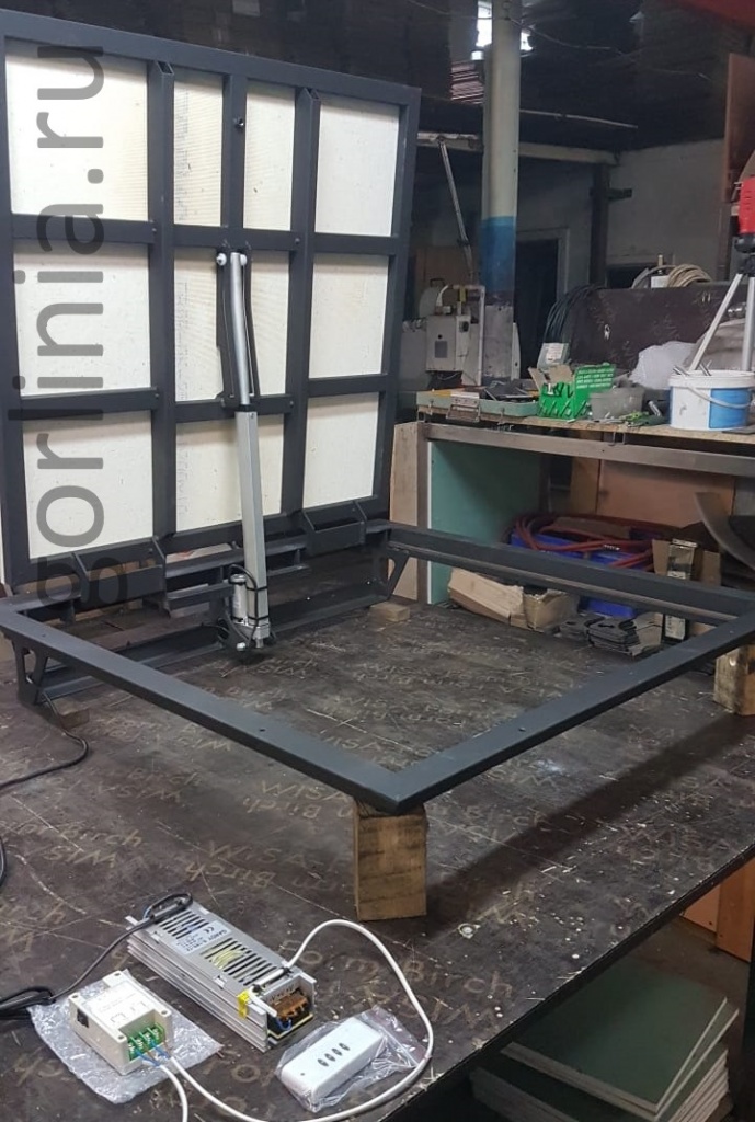 Точечный вылет кронштейнов относительно опорных поверхностей 36/48 мм в зависимости от мощности усилия электроподъемника.Аварийный вариант — поднимаем крышку и фиксируем в перпендикулярном линии пола состоянии штоком обесточенного подъемника.