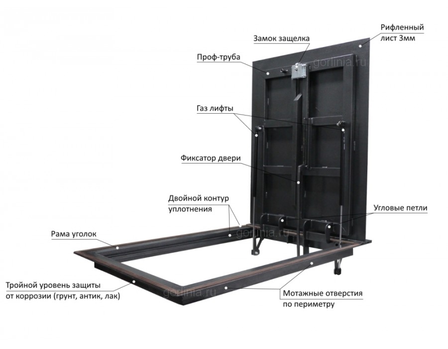 Закажите люк в подвал sтелс 800*800 рифленый в нашей компании, и вы сможете обустроить идеальный лаз в погреб.