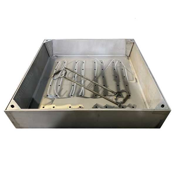 Изделие изготовлено из листового проката с применением лазерной резки, прессового оборудования и сварки. В дне корыта выбраны дренажные отверстия для схода полива.