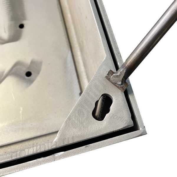 Оснастка для открывания - специальные крюки с т-образным наконечником, которые вставляют в отверстия по углам крышки.