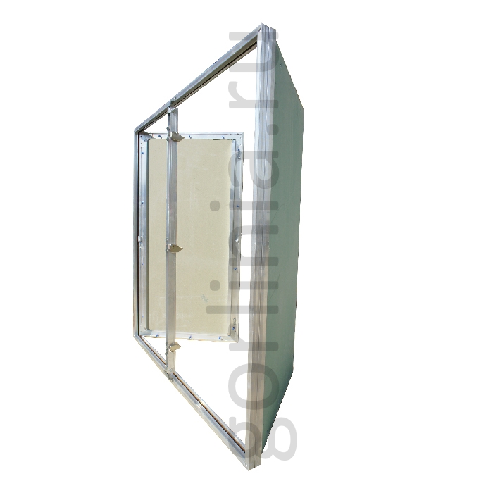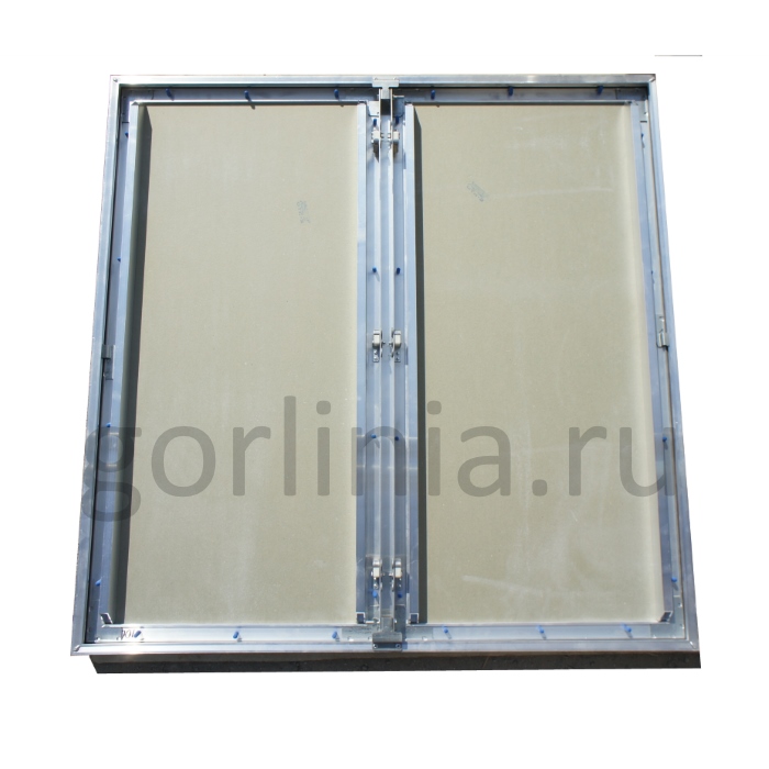 Нажимные створки ходят на несъемных петлях с одной осью вращения, дополнительно фиксируется в раме через съемную перемычку по центру
