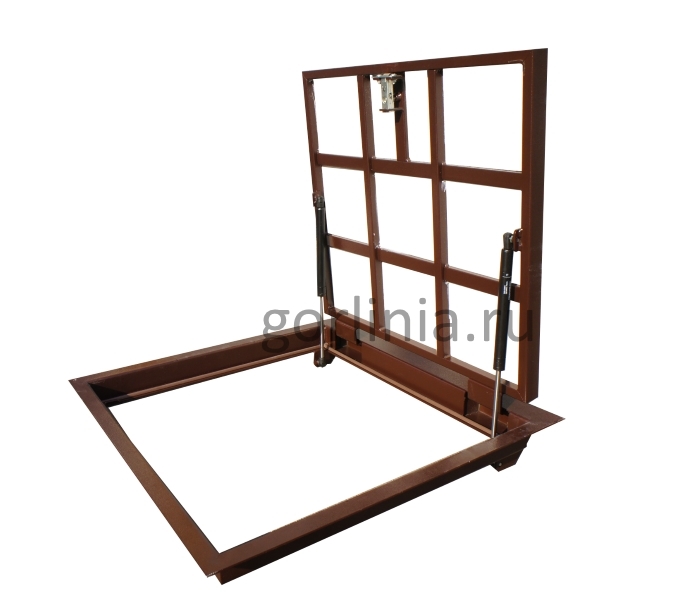 в проем 70х90 с устройством дополнительной опоры из уголка, профиля, бруска;