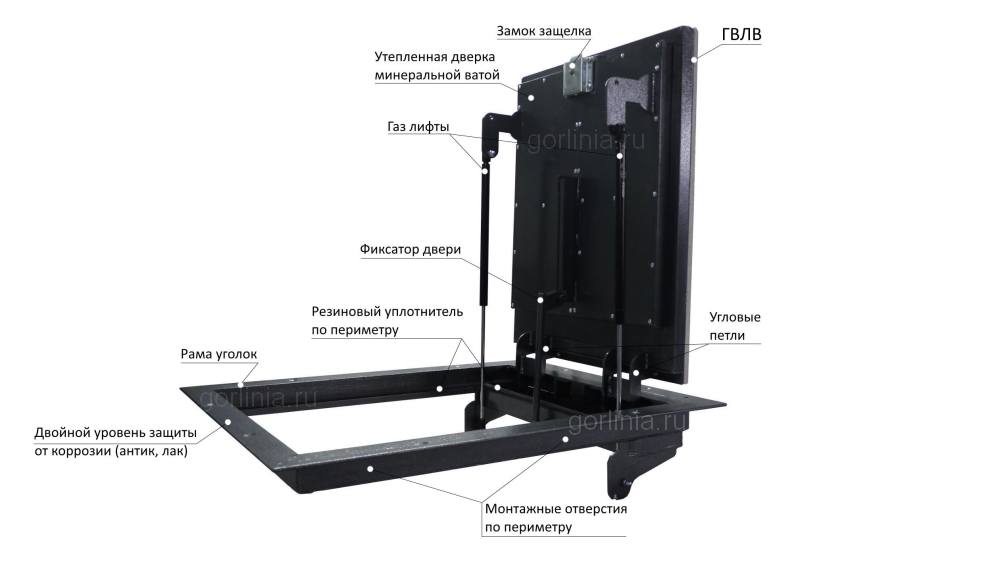 Обращаем внимание на узкий световой проём 440 мм по плечевой стороне. Если Вам нужно спускаться в подвал по лестнице, закажите размер 1100*600п с петлей по малой стороне.