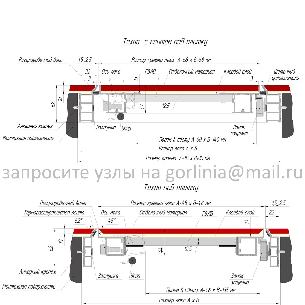 - без обрамления торцов в исполнении невидимка.